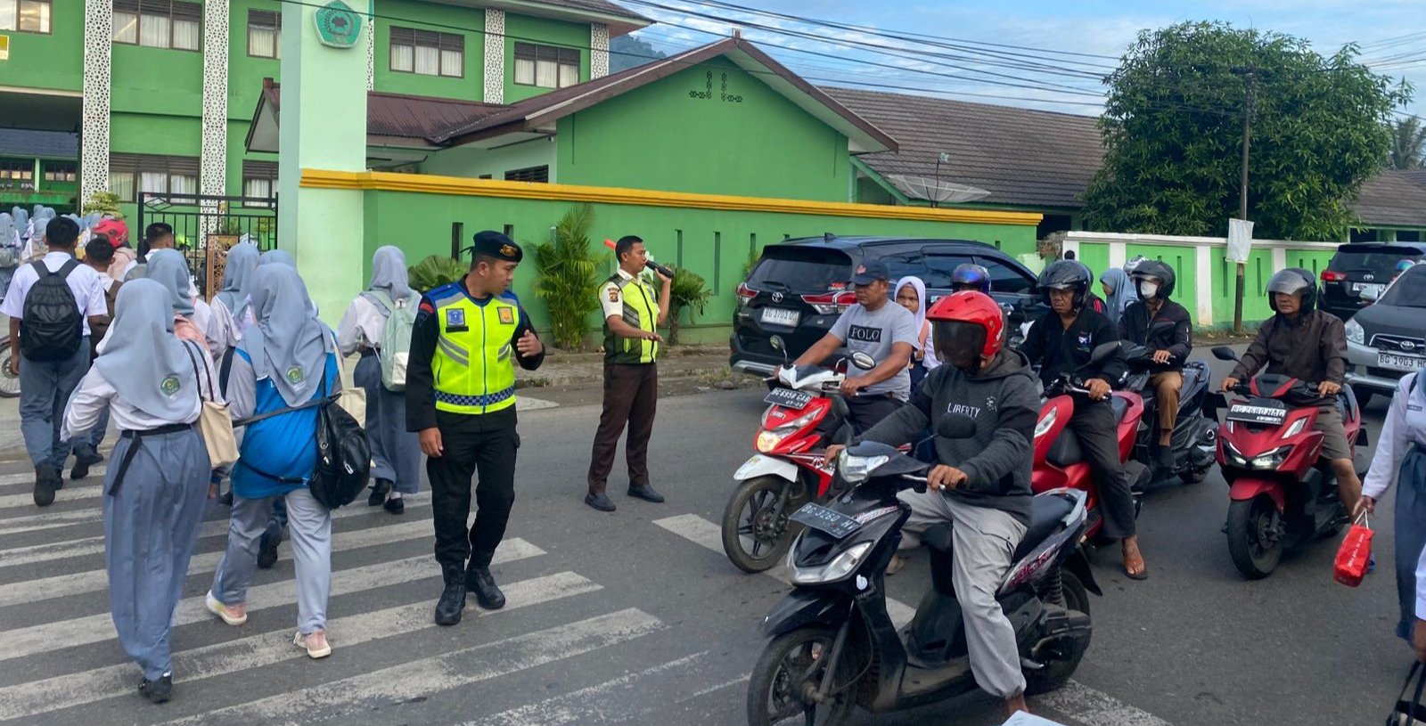 Fokus pengamanan dilakukan di dua titik padat, yakni depan MTS Negeri 1 Lubuklinggau dan Simpang Nangka, Jalan Jenderal Sudirman — kawasan yang dikenal rawan kemacetan setiap pagi karena aktivitas pelajar dan masyarakat yang memulai hari.