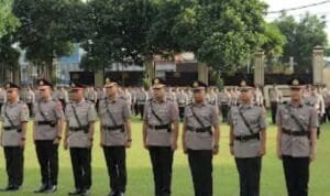 Usai upacara serah terima jabatan, kegiatan dilanjutkan dengan upacara korps raport kenaikan pangkat bagi personel Polres Lubuk Linggau periode 1 Juli 2025.