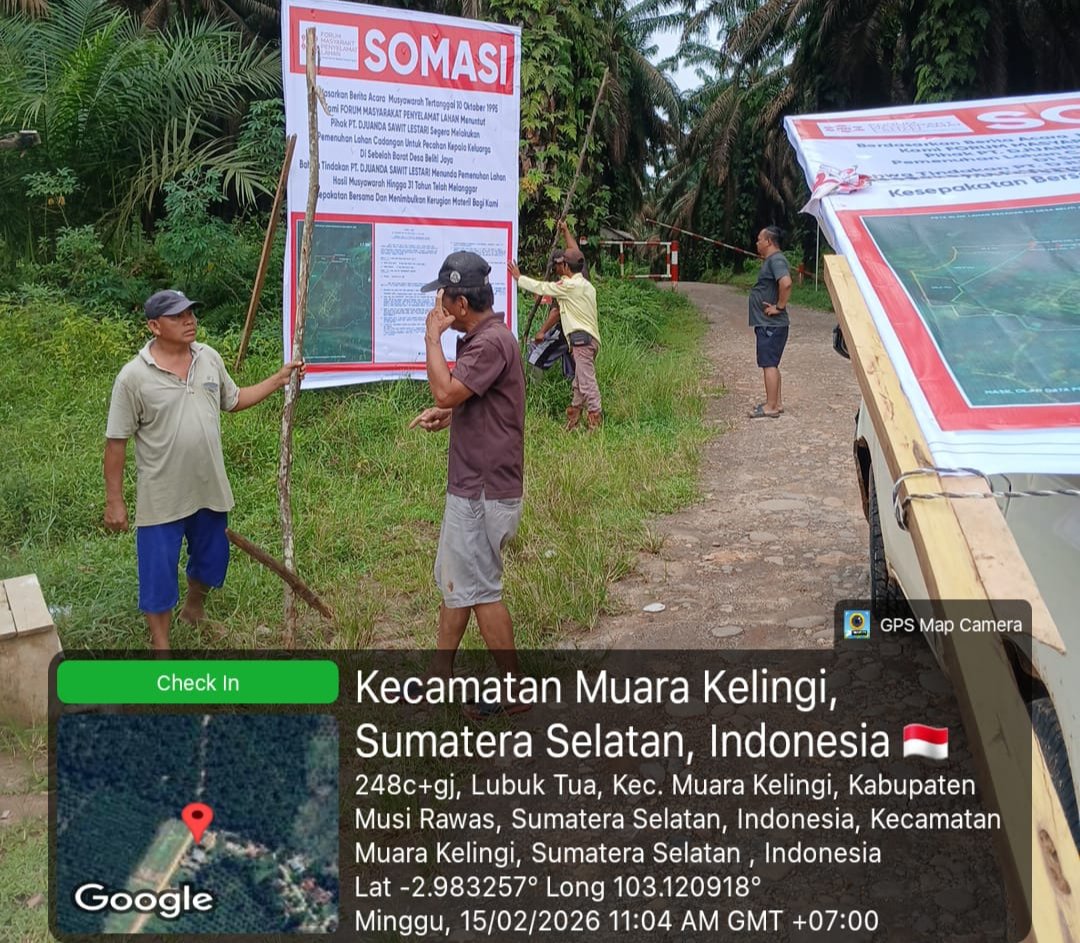 Forum Masyarakat Penyelamat Lahan mendatangi pihak perusahaan pada Sabtu, 14 Februari 2026, untuk menuntut realisasi kesepakatan alokasi lahan yang dibuat sejak 10 Oktober 1995 dan hingga kini belum dipenuhi.