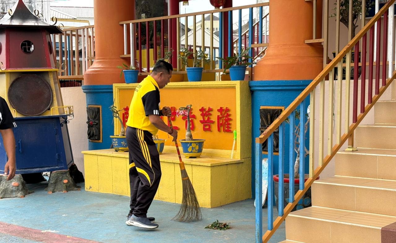 Menyentuh! Polisi Bersihkan Vihara dan Klenteng, Bukti Toleransi di Lubuk Linggau