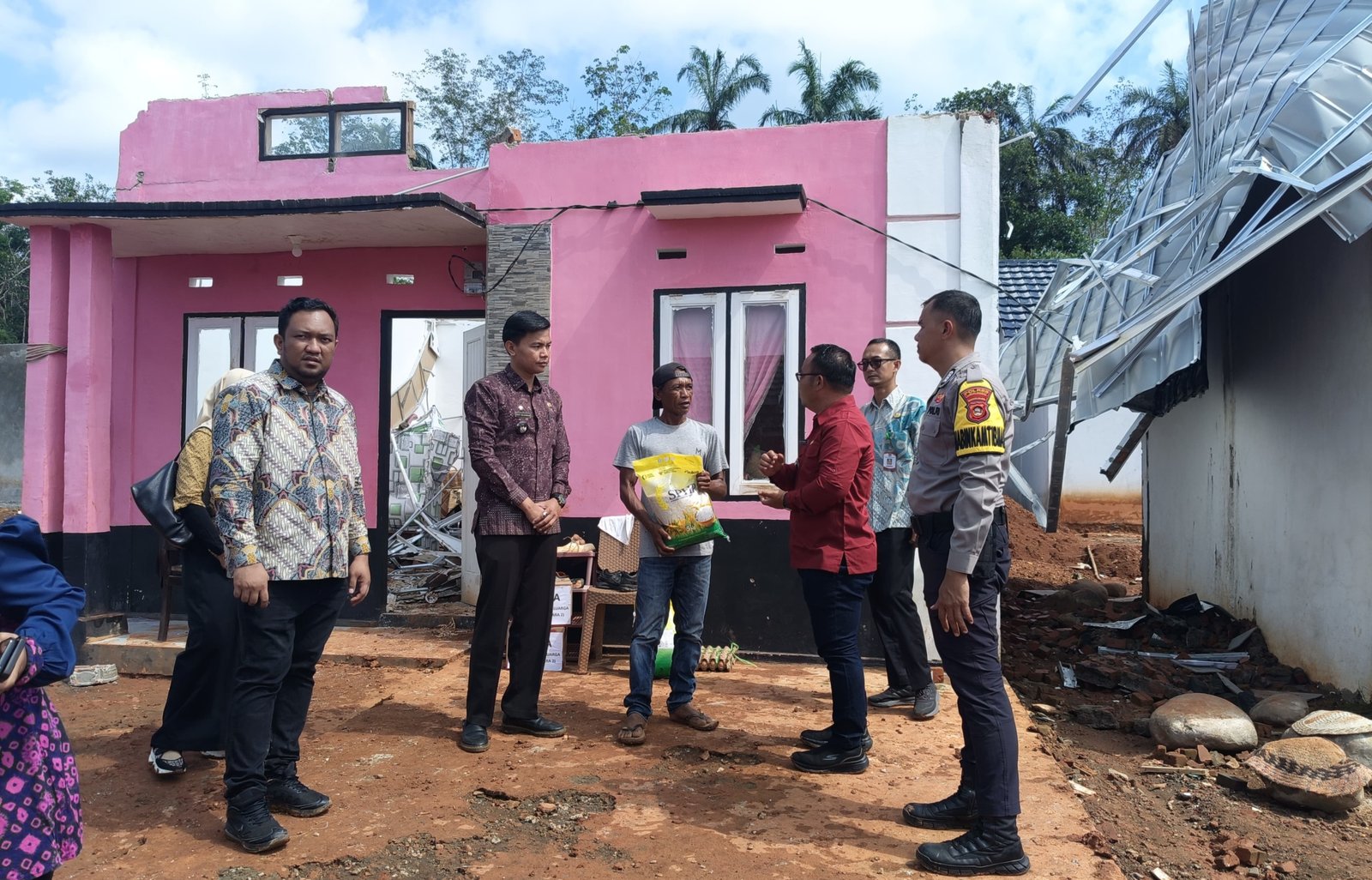Selain memberikan dukungan moril, rombongan juga menyalurkan bantuan berupa paket sembako kepada warga yang rumahnya mengalami kerusakan akibat terjangan puting beliung.