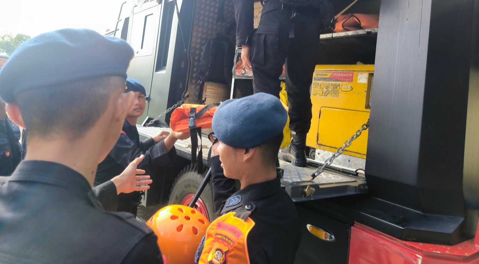 Dalam kegiatan tersebut, personel dilengkapi dengan peralatan SAR seperti helm pelindung, pelampung, sepatu bot, tali carmantel, dan peralatan evakuasi lainnya